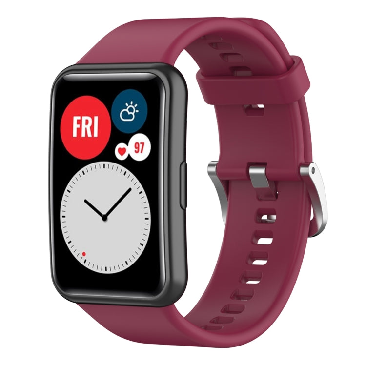 For Huawei Watch Fit New Solid Color Silicone Watch Band(Wine Red)