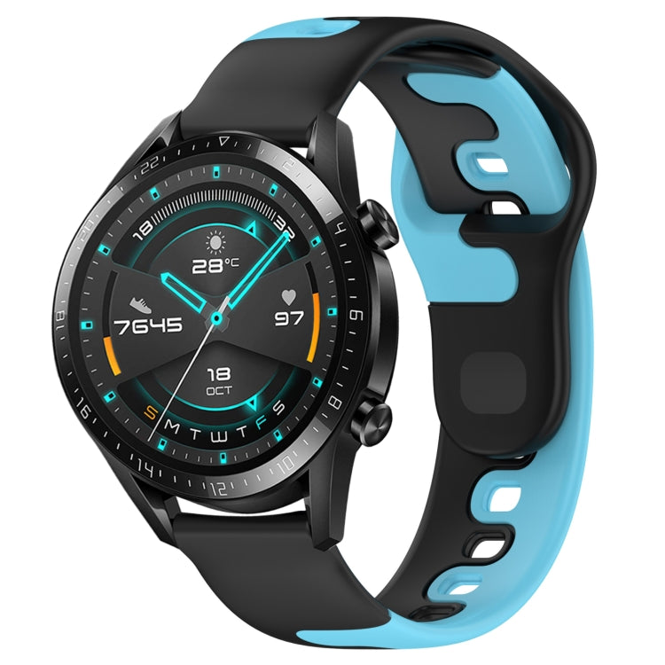 For Huawei Watch GT2 42mm 20mm Double Color Silicone Watch Band(Black+Blue)