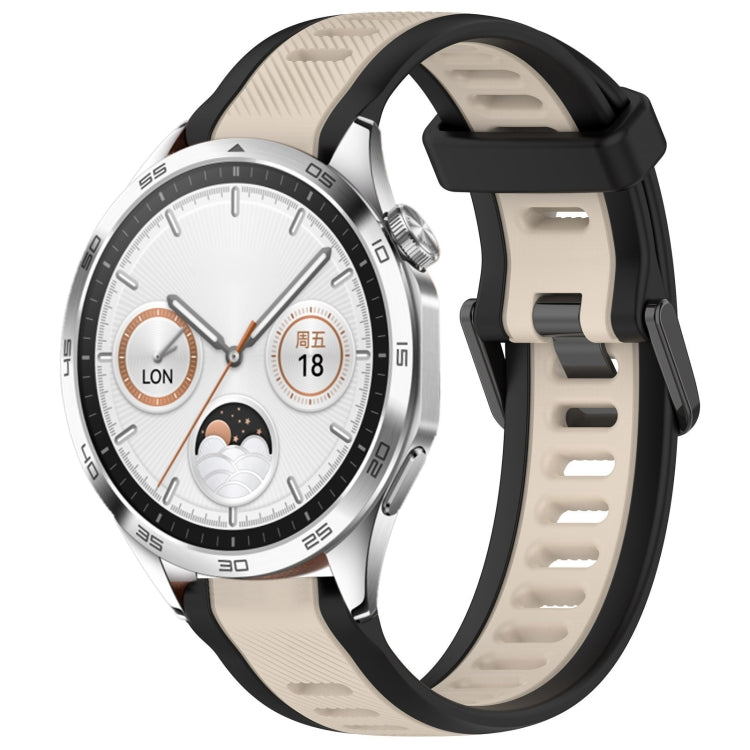 For Huawei Watch GT4 46mm 22mm Two Color Textured Silicone Watch Band(Starlight + Black)