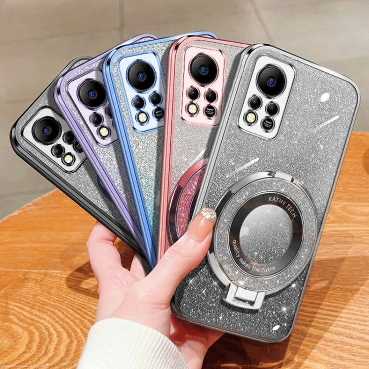 For Infinix Hot 11s NFC Plated Gradient Glitter Round Holder TPU Phone Case(Silver)