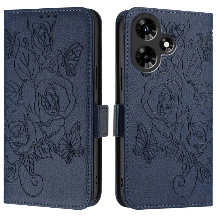 For Infinix Hot 30 4G Embossed Rose RFID Anti-theft Leather Phone Case(Dark Blue)