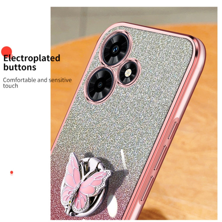 For Infinix Hot 30 Plated Gradient Glitter Butterfly Holder TPU Phone Case(Black)