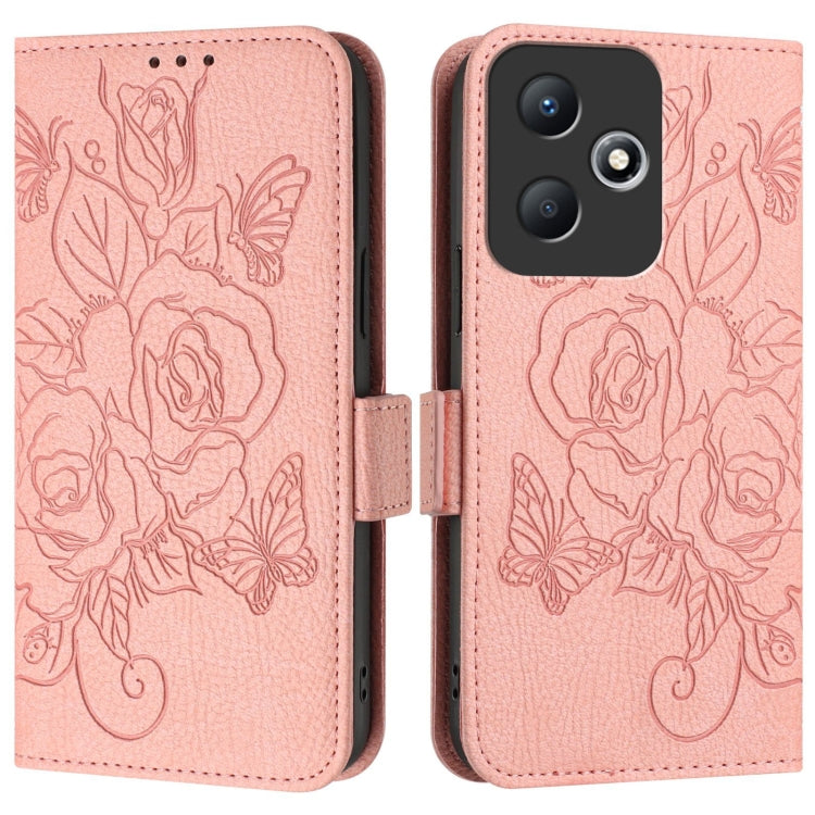 For Infinix Hot 30 Play / 30 Play NFC Embossed Rose RFID Anti-theft Leather Phone Case(Pink)