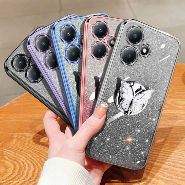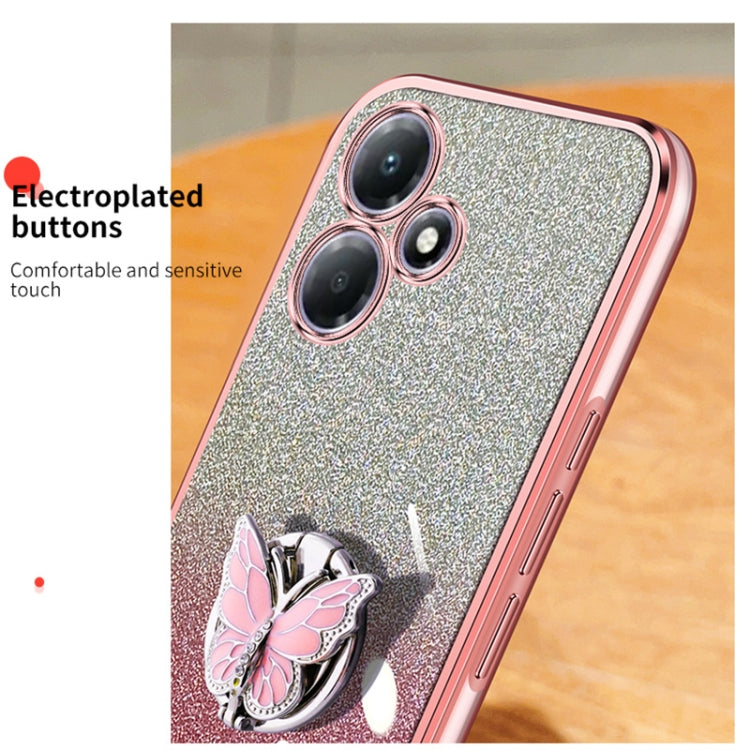 For Infinix Hot 30 Play Plated Gradient Glitter Butterfly Holder TPU Phone Case(Silver)