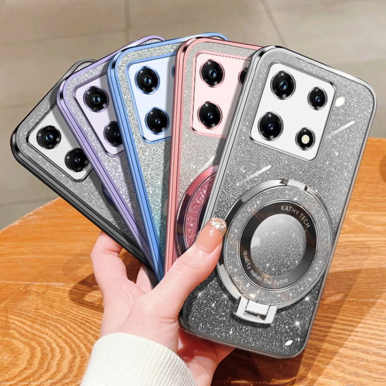 For Infinix Note 30 Pro Plated Gradient Glitter Round Holder TPU Phone Case(Black)