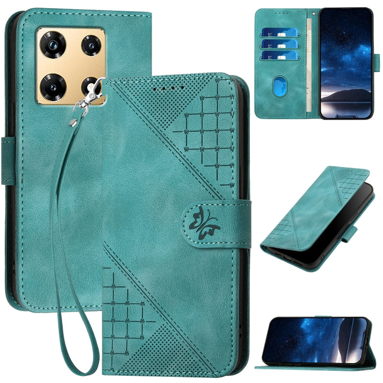 For Infinix Note 30 Pro Grid Butterfly Embossed Pattern Leather Phone Case with Lanyard(Light Blue)