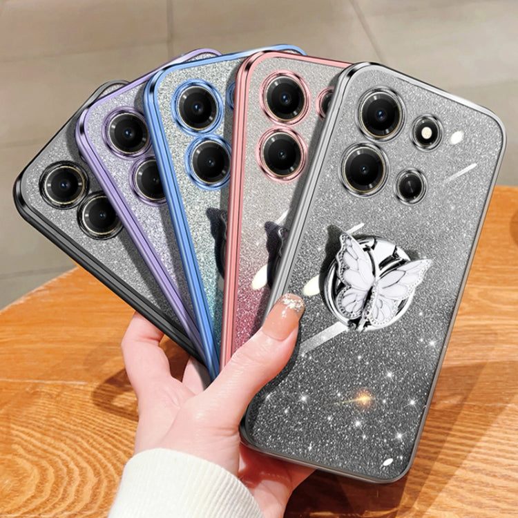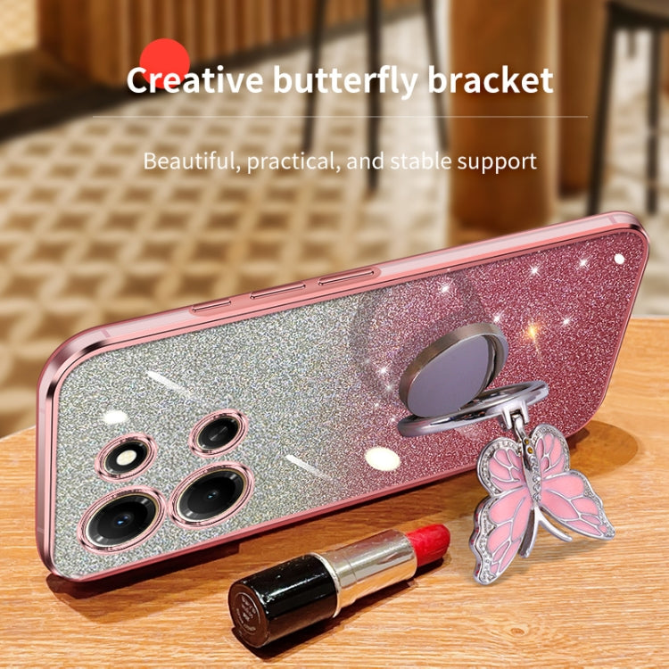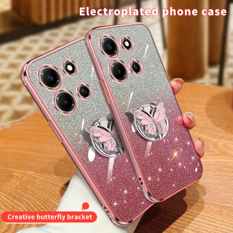 For Infinix Note 30i Plated Gradient Glitter Butterfly Holder TPU Phone Case(Pink)