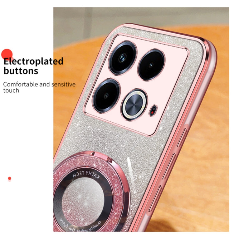 For Infinix Note 40 Plated Gradient Glitter Round Holder TPU Phone Case(Black)