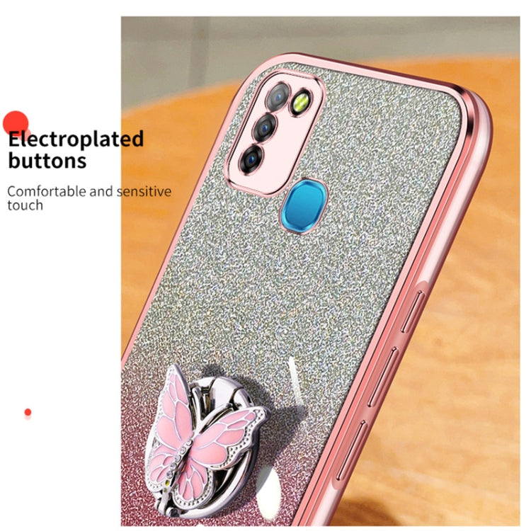 For Infinix Smart 5 Plated Gradient Glitter Butterfly Holder TPU Phone Case(Purple)