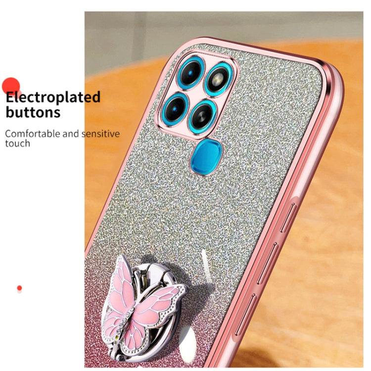 For Infinix Smart 6 Plated Gradient Glitter Butterfly Holder TPU Phone Case(Sierra Blue)