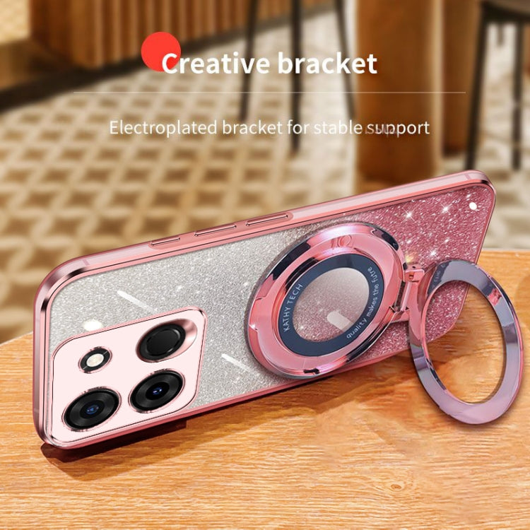For Infinix Smart 7 Plated Gradient Glitter Round Holder TPU Phone Case(Pink)