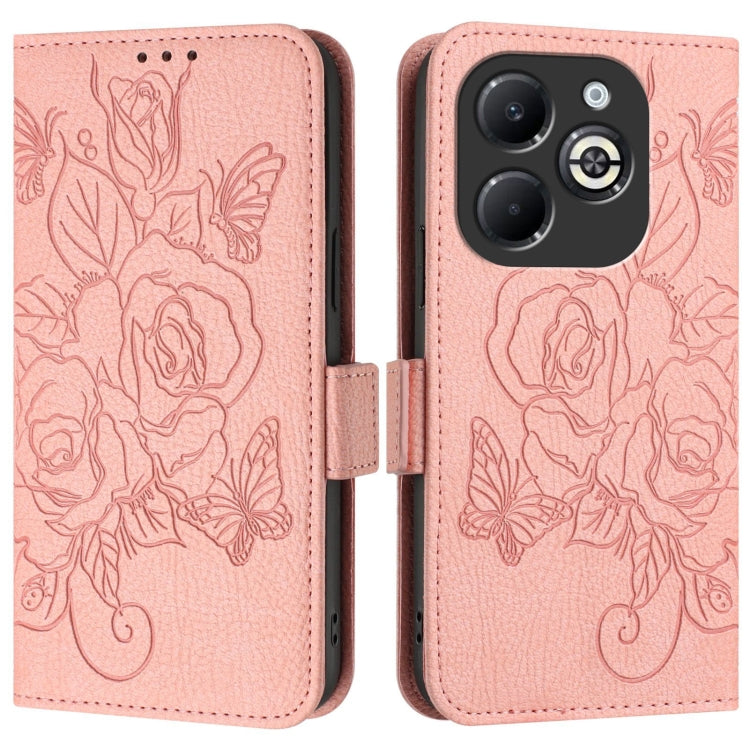 For Infinix Smart 8 Plus / 8 Pro / T8 Plus Embossed Rose RFID Anti-theft Leather Phone Case(Pink)