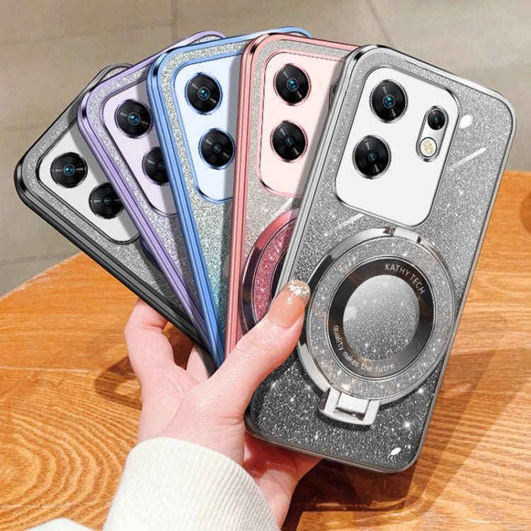 For Infinix Zero 30 4G Plated Gradient Glitter Round Holder TPU Phone Case(Sierra Blue)