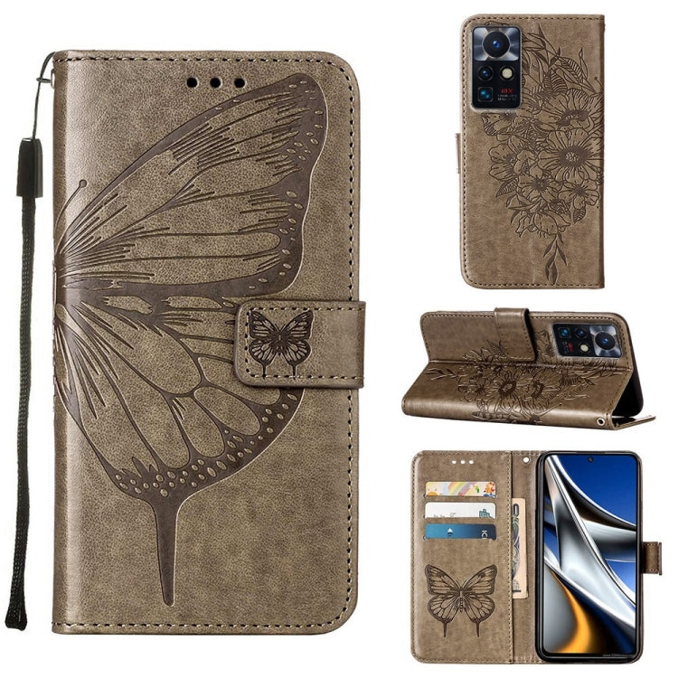 For Infinix Zero X Neo Embossed Butterfly Leather Phone Case(Grey)