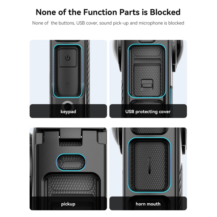 1. Suitable for Insta360 X4 camera quick-release plastic cage, rich expansion interface, can be used for horizontal and vertical shooting.