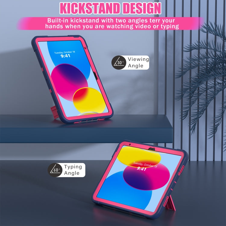 For iPad 2025 / 2022 Contrast Color Silicone + PC Tablet Case with Holder(Navy Blue Rose Red)