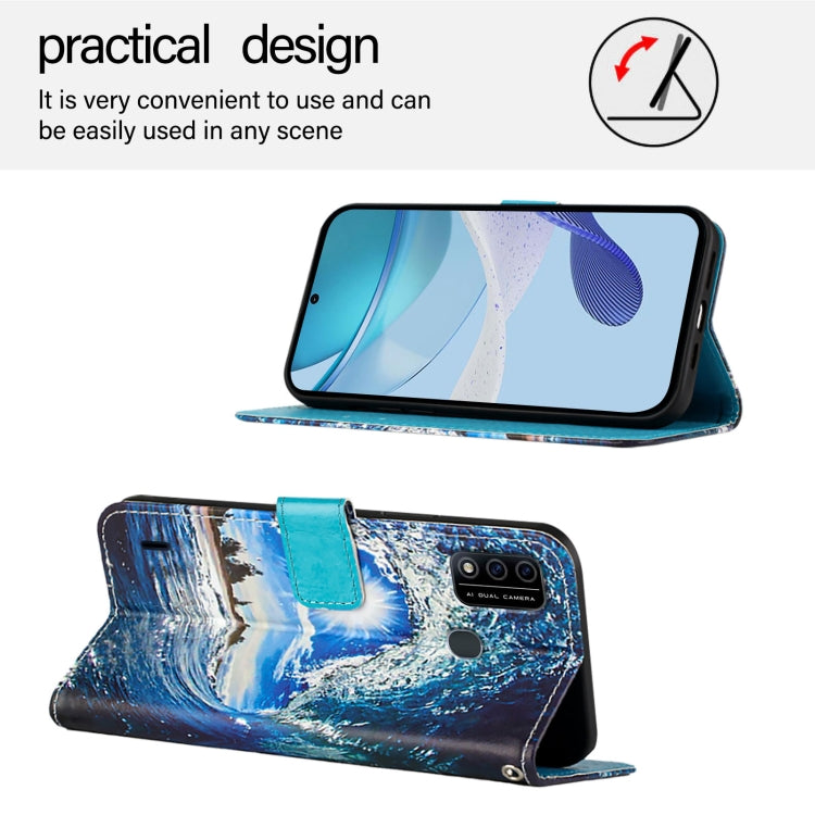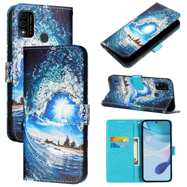 For itel A48 Colored Drawing Pattern Plain Weave Leather Phone Case(Waves And Sun)