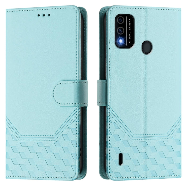 For itel A48 Honeycomb Embossing RFID Leather Phone Case(Mint Green)