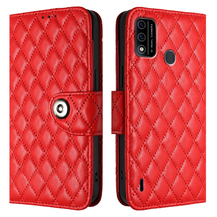 For itel A48 Rhombic Texture Flip Leather Phone Case with Lanyard(Red)
