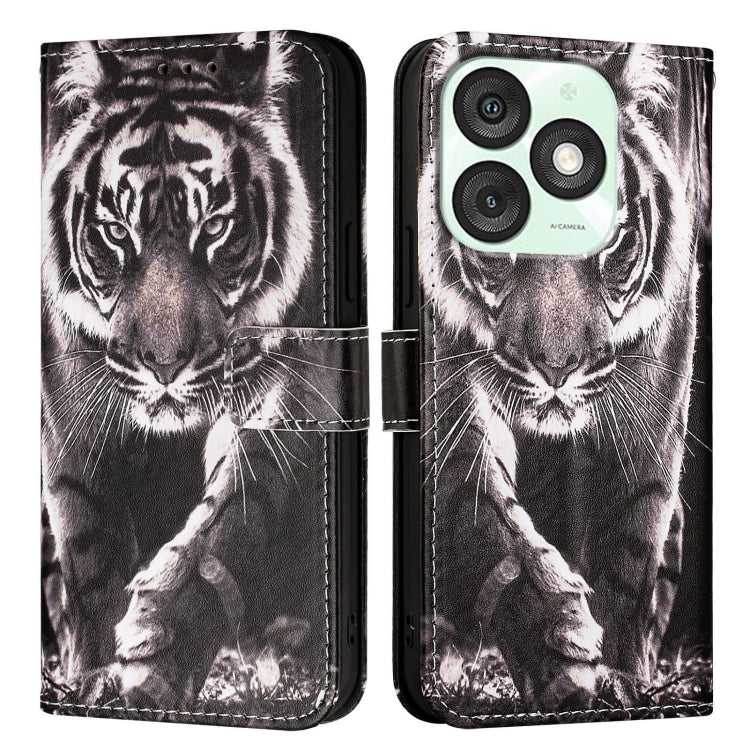 For itel A50 Colored Drawing Pattern Plain Weave Leather Phone Case(Black And White Tiger)