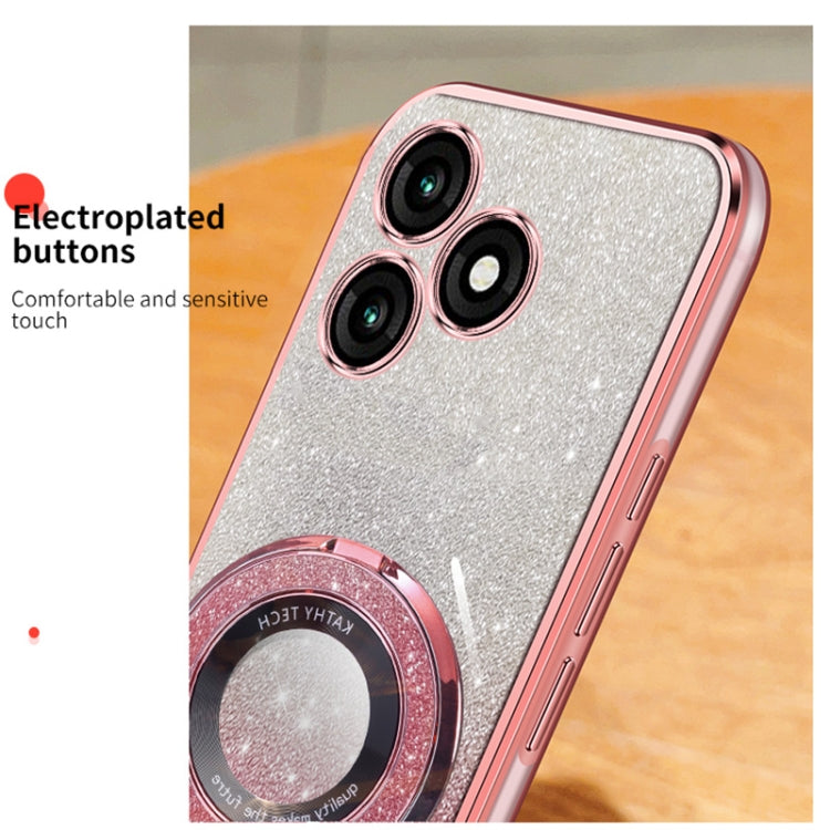 For Itel A70 Plated Gradient Glitter Round Holder TPU Phone Case(Sierra Blue)