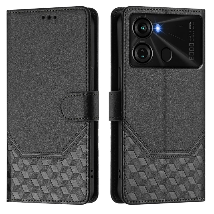 For itel P40 Honeycomb Embossing RFID Leather Phone Case(Black)