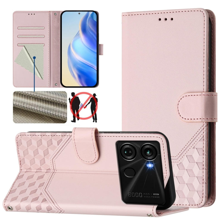 For itel P40 Honeycomb Embossing RFID Leather Phone Case(Pink)