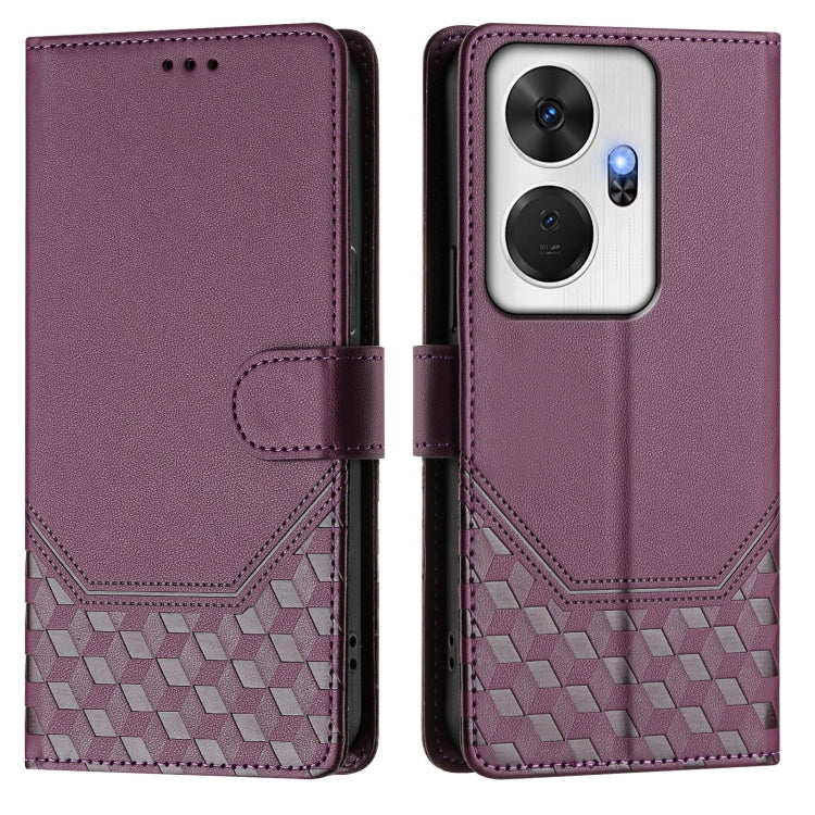 For itel P55+ Honeycomb Embossing RFID Leather Phone Case(Violet)