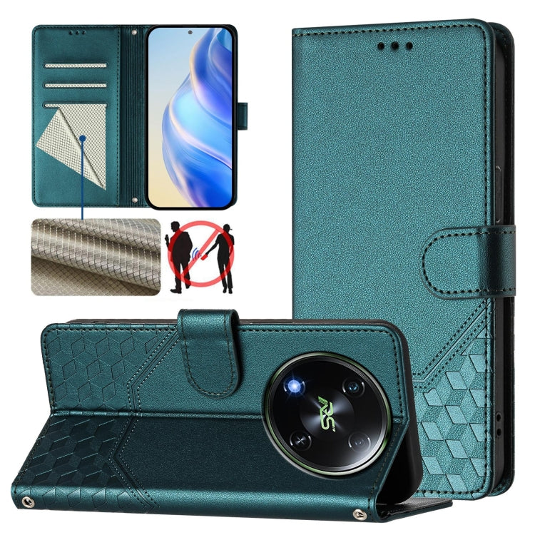 For itel RS4 S666LN Honeycomb Embossing RFID Leather Phone Case(Peacock Green)