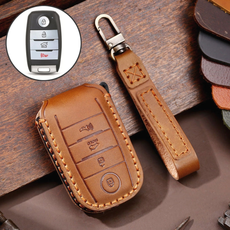 For Kia C133 4-button Hallmo Car Cowhide Leather Key Protective Cover Key Case(Brown)
