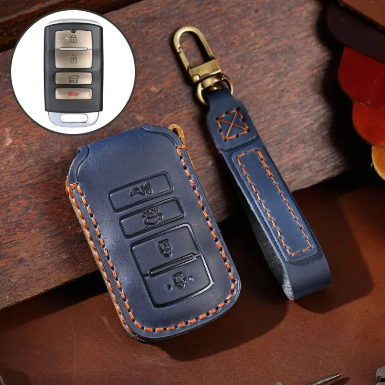 For Kia K4 Hallmo Car Cowhide Leather Key Protective Cover Key Case(Blue)