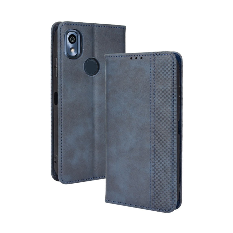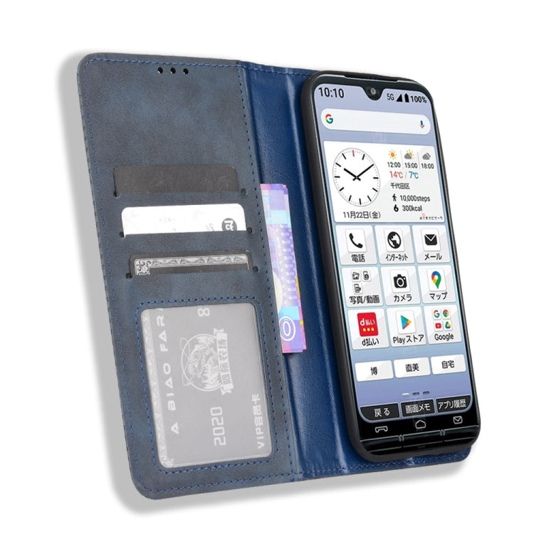 For Kyocera KY-51B Magnetic Buckle Retro Texture Leather Case(Blue)