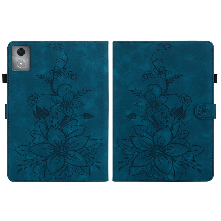 For Lenovo Tab K11 Plus Lily Embossed Leather Tablet Case(Dark Blue)