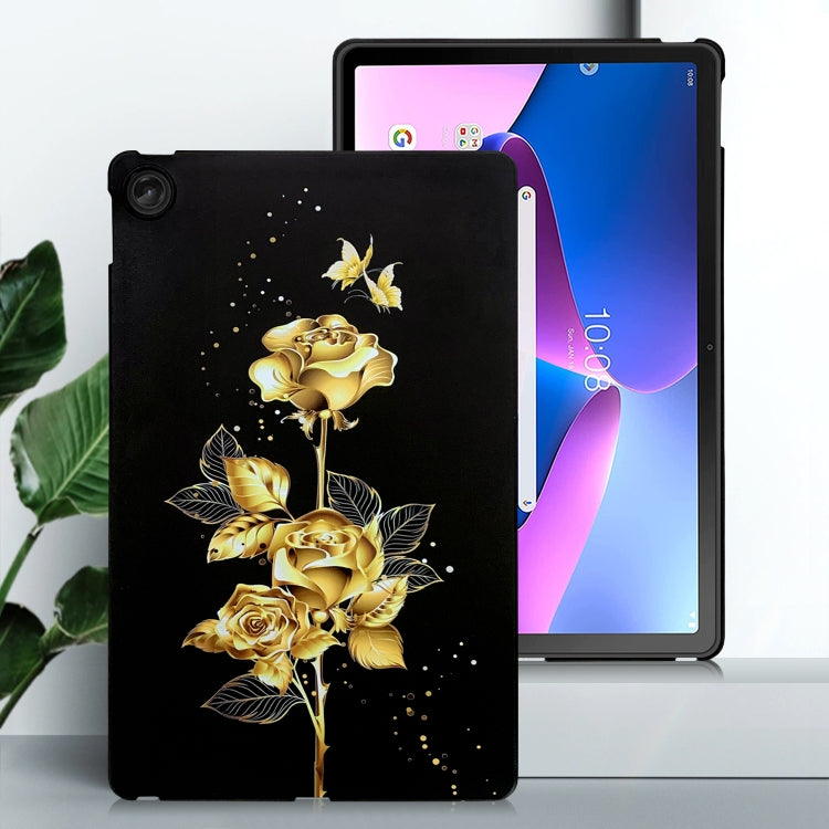 For Lenovo Tab M10 Plus 3rd Gen Color Painting Pattern Smart Tablet TPU Case(Golden Rose)