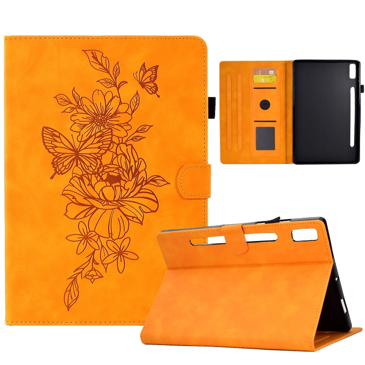 For Lenovo Tab P11 Pro Gen 2 Peony Butterfly Embossed Leather Tablet Case(Khaki)
