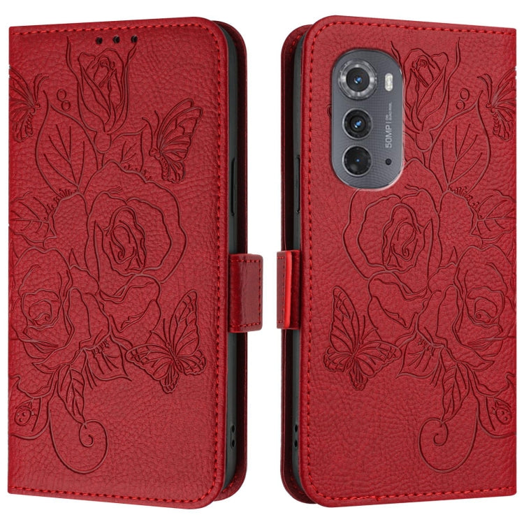 For Motorola Edge 2022 / 5G UW 2022 Embossed Rose RFID Anti-theft Leather Phone Case(Red)