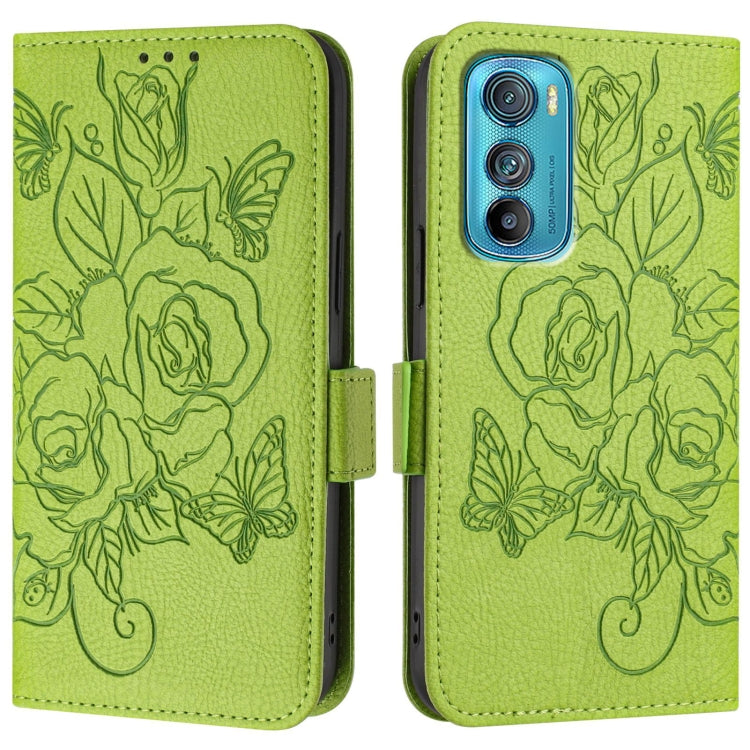 For Motorola Edge 30 Embossed Rose RFID Anti-theft Leather Phone Case(Green)