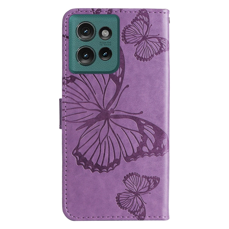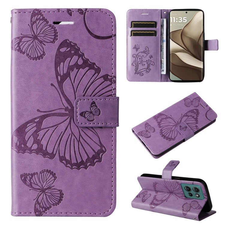 For Motorola Edge 50 5G 3D Butterfly Embossed Pattern Flip Leather Phone Case(Purple)