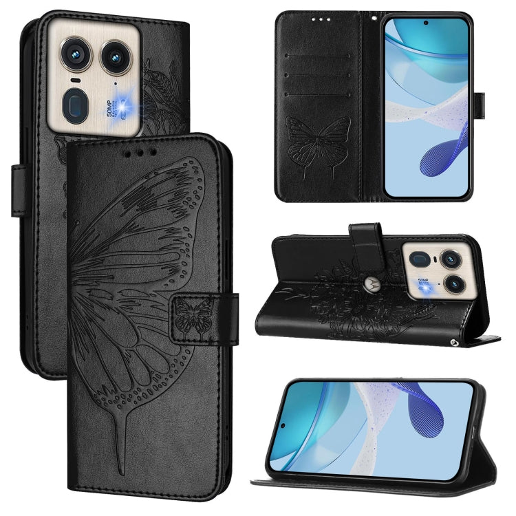 For Motorola Edge 50 5G Embossed Butterfly Leather Phone Case(Black)