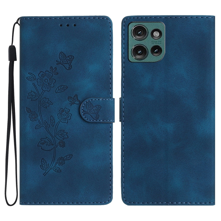 For Motorola Edge 50 5G Flower Butterfly Embossing Pattern Leather Phone Case(Blue)