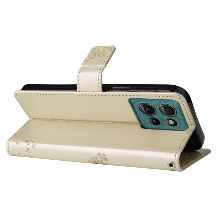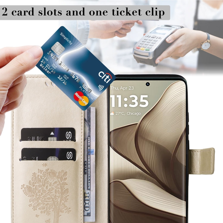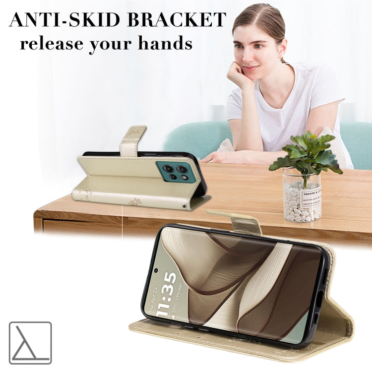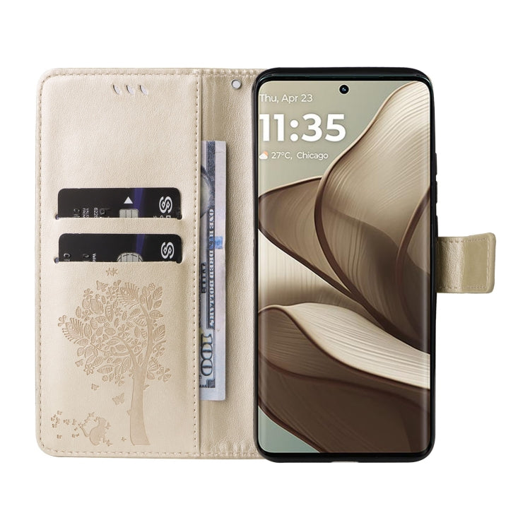 For Motorola Edge 50 5G Tree & Cat Embossed Pattern Flip Leather Phone Case(Gold)