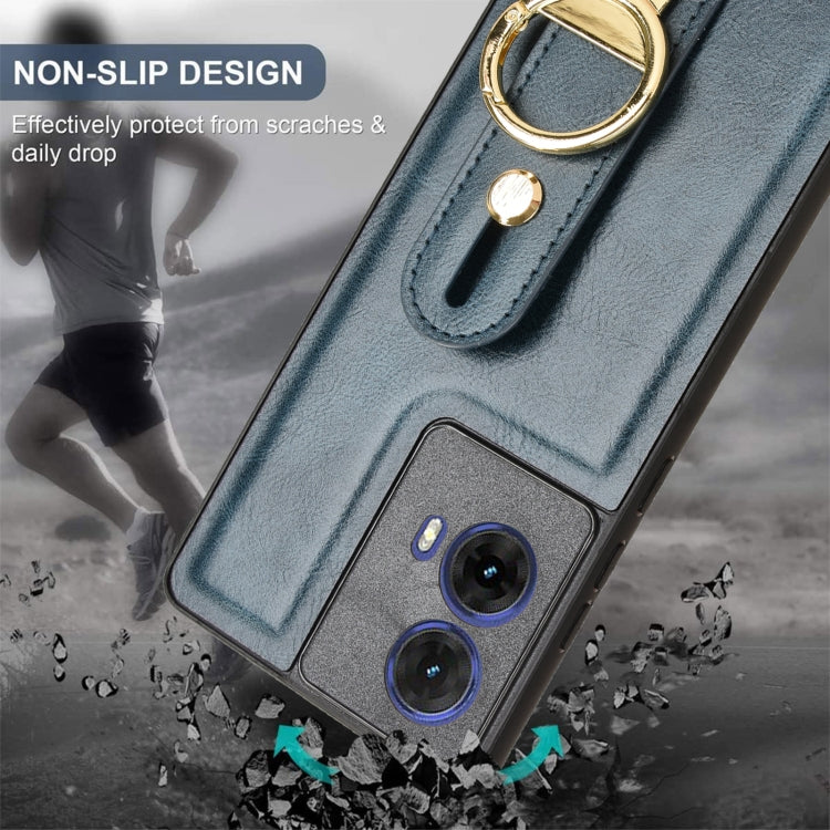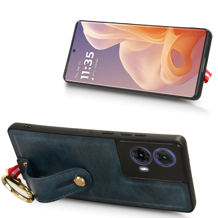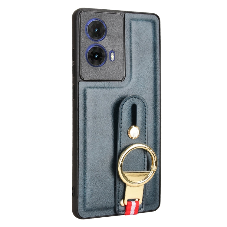 For Motorola Edge 50 Fusion 5G Wristband Leather Back Phone Case(Blue)