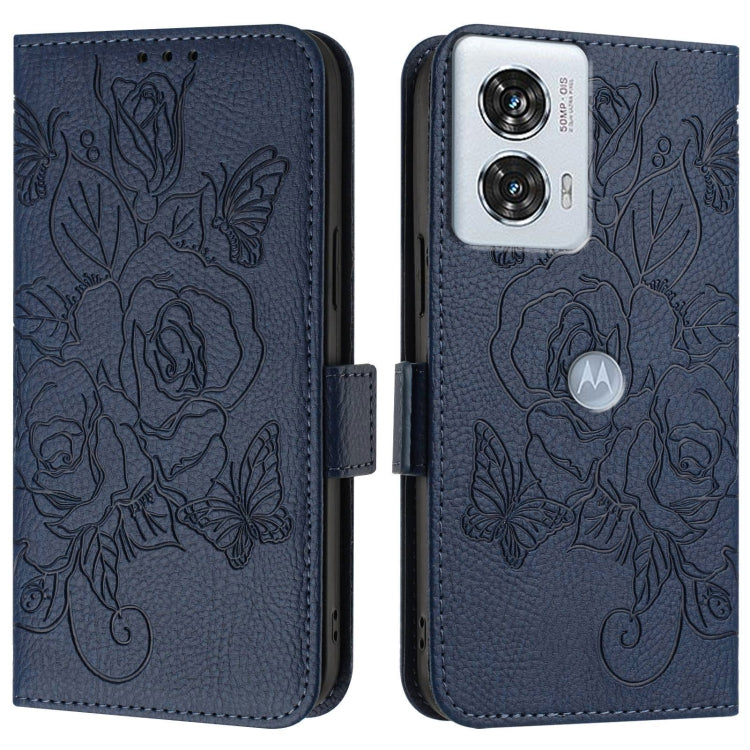 For Motorola Edge 50 Fusion Embossed Rose RFID Anti-theft Leather Phone Case(Dark Blue)