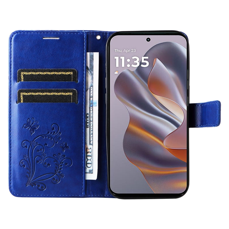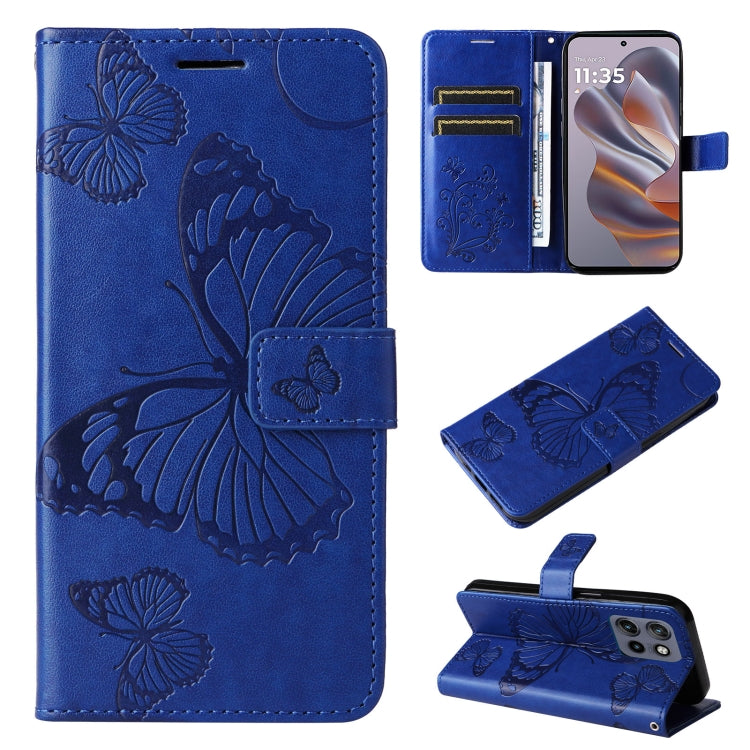 For Motorola Edge 50 Neo 3D Butterfly Embossed Pattern Flip Leather Phone Case(Blue)