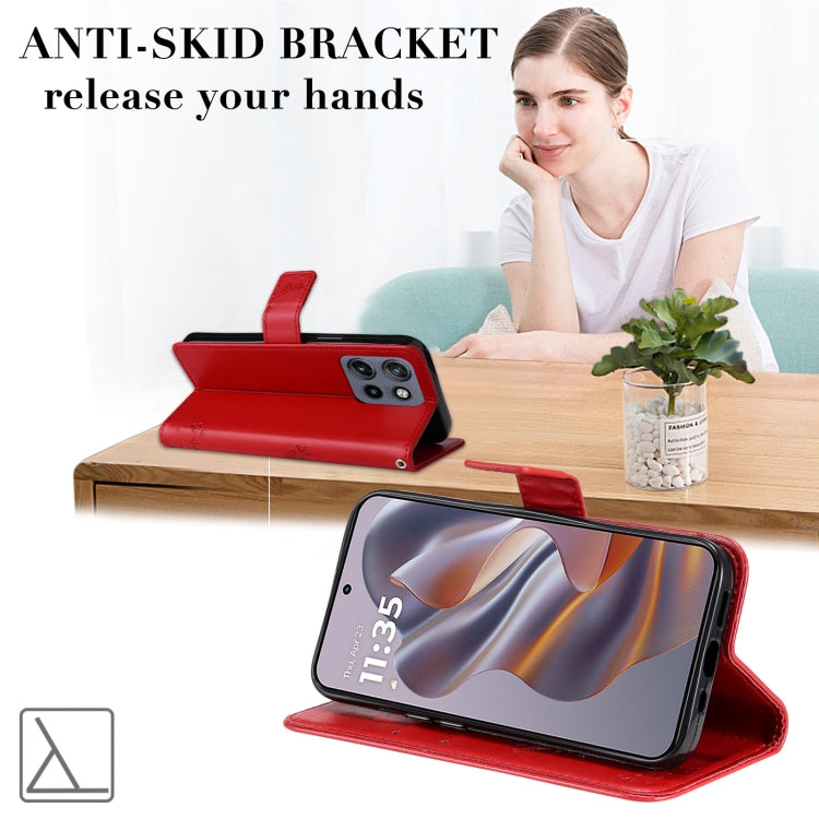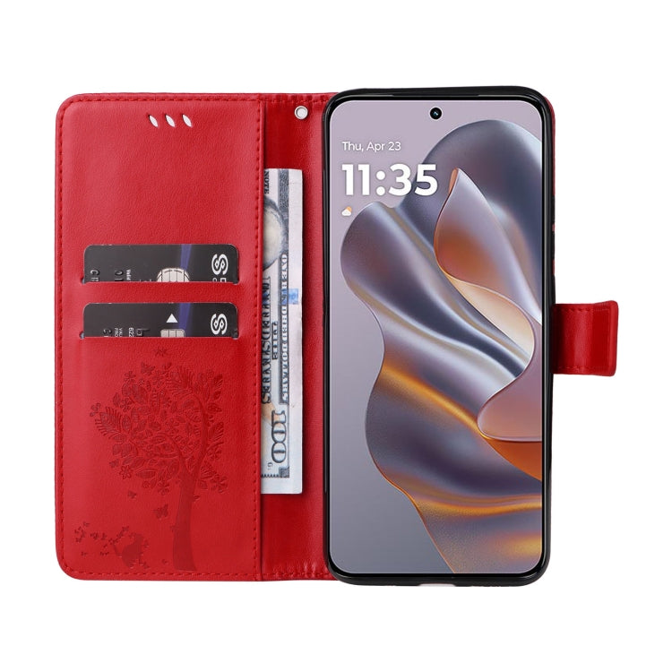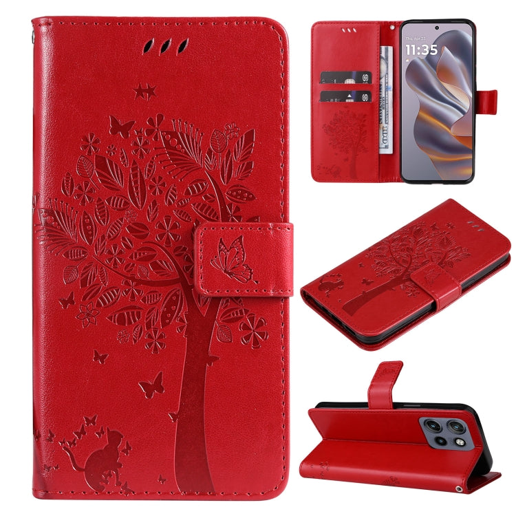 For Motorola Edge 50 Neo Tree & Cat Embossed Pattern Flip Leather Phone Case(Red)