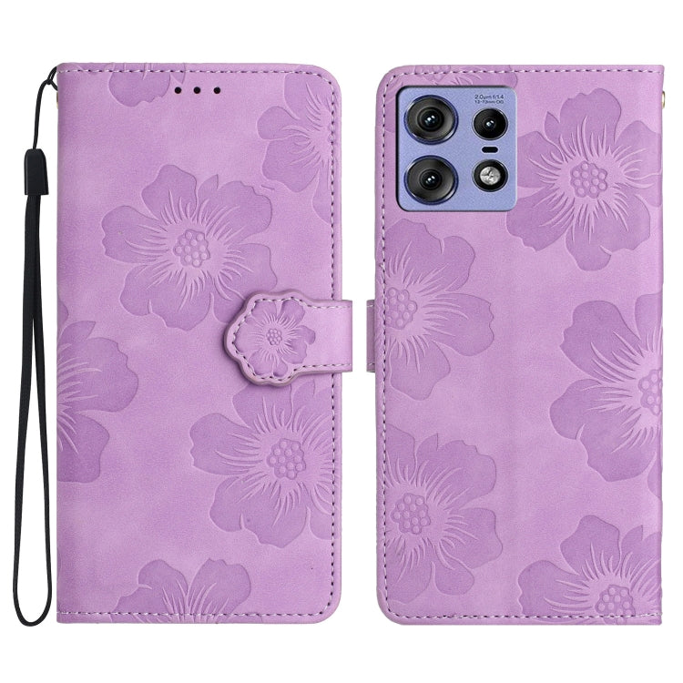 For Motorola Edge 50 Pro Flower Embossing Pattern Leather Phone Case(Purple)