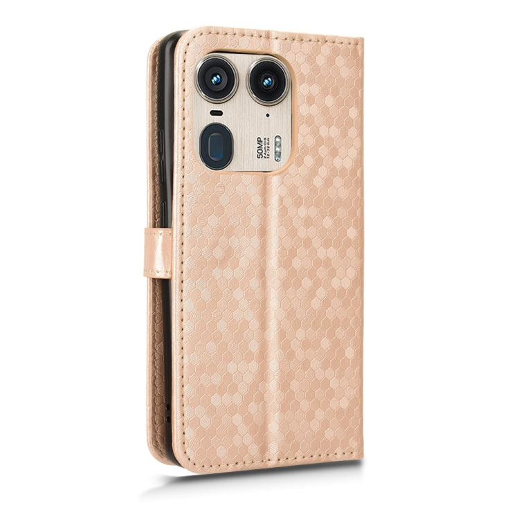 For Motorola Edge 50 Ultra Honeycomb Dot Texture Leather Phone Case(Gold)
