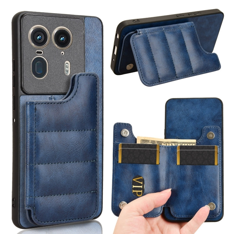 For Motorola Edge 50 Ultra / X50 Ultra Cow Pattern Sewing Card Bag Phone Case(Blue)