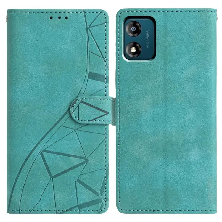 For Motorola Moto E13 Triangles Embossed Leather Phone Case(Green)
