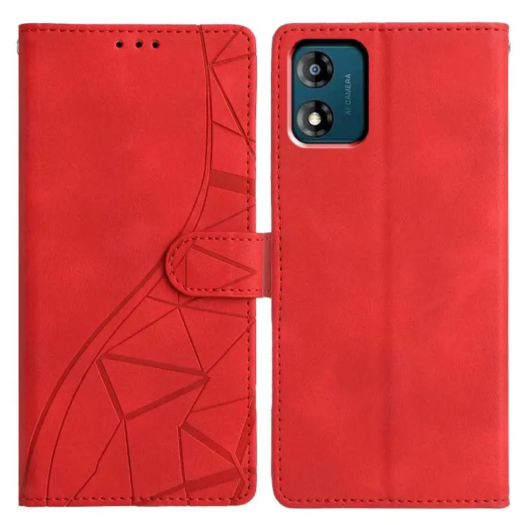 For Motorola Moto E13 Triangles Embossed Leather Phone Case(Red)